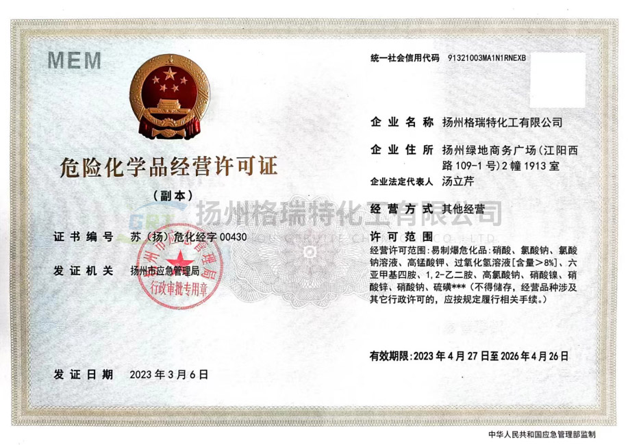 揚州格瑞特化工有限公司生產工廠坐落于江蘇省海安縣胡集工業園區和海安精細化工工業園??偣境闪⒂?999年,是集科、工、貿為一體的現代化生產型企業。專業致力于水處理劑、紡織印染助劑、化纖油劑等產品的科研、開發、生產和銷售??偣菊嫉孛娣e40000m,建有現代化標準廠房,擁有先進的生產設備。年產各類水處理劑系列產品12000噸,紡織印染助劑5000噸,產品12個系列40多個品種??偣咀⒅丶夹g投入,設立產品研發中心和環保運營中心,聘請了多位專家為公司技術顧問,并和多個重點院校建立了長期技術合作開發關系,是南通大學、江南大學、南京工業大學產學研基地。